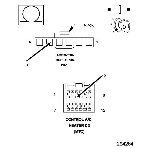 The purpose of actuator calibration is to determine the total span of door travel between physical stops. To calibrate the actuator, the A/C Heater Control first moves the door to its soft stop, and then counts the number of pulses it takes to move the door to its other stop. An expected range of span is stored in the control's memory. If the A/C Heater Control detects no commutator pulses when calibrating the rear mode door, this DTC will set.