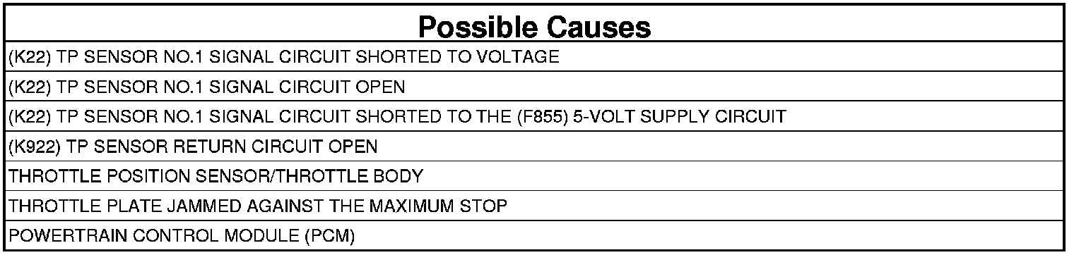 - Repair the short between the (F855) 5-volt Supply circuit and the (K22) TP Sensor No.1 Signal circuit.