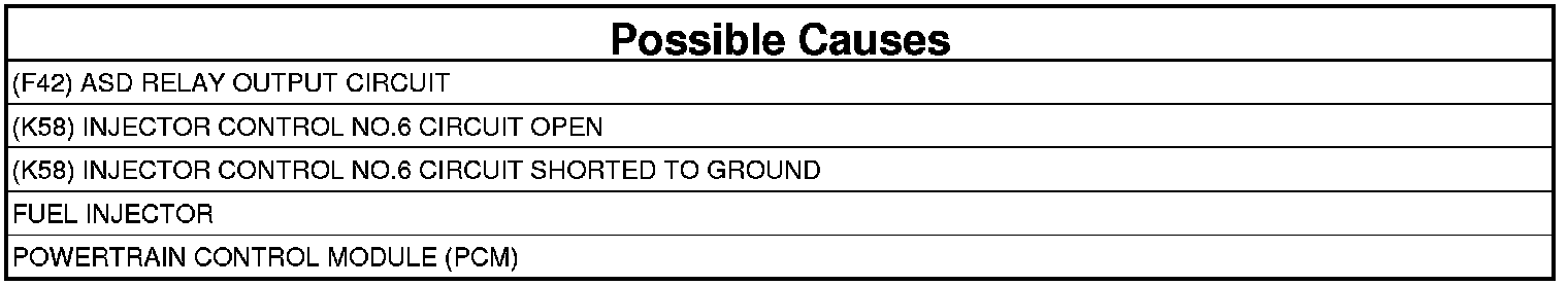 - Repair the short to ground in the (K58) Injector Control No.6 circuit.
