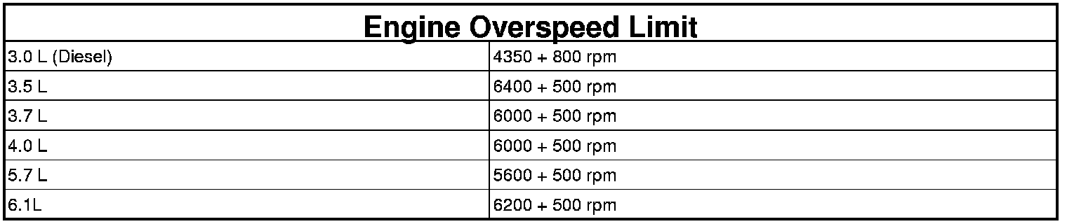 Engine speed is greater than a calibrated limit (see table).