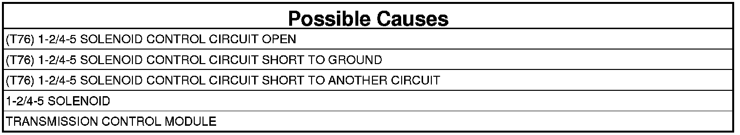 - Repair the (T76) 1-2/4-5 Solenoid Control circuit for a short to ground.