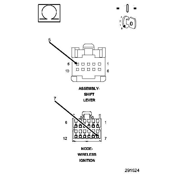 2. Measure the resistance of the (K321) BTSI Control circuit between the Shifter Lever Assembly harness connector and the Wireless Ignition Node (WIN) harness connector.