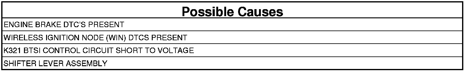 - Repair the (K321) BTSI Control circuit for a short to voltage.