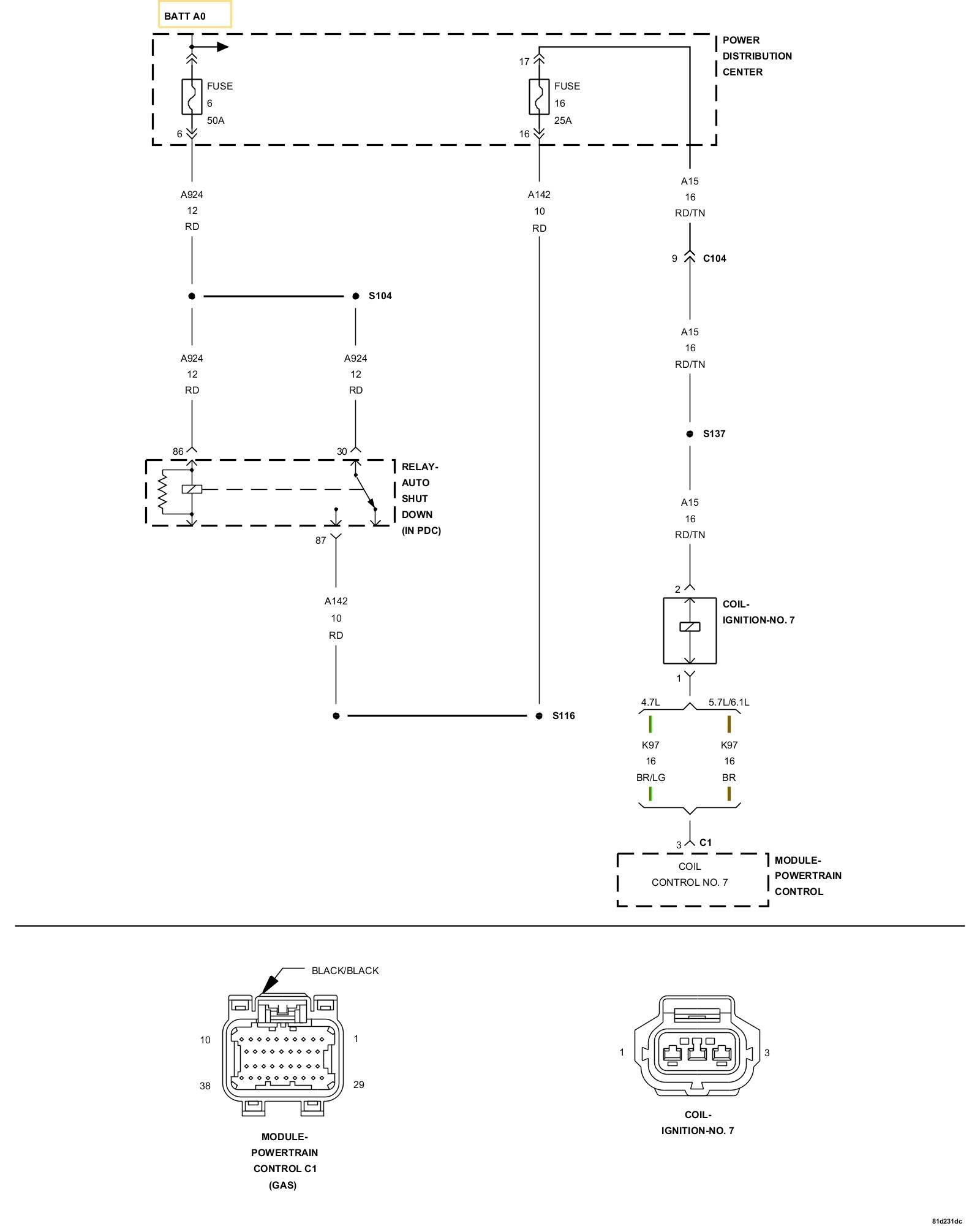 - Repair the open or short to ground in the (A15) ASD Relay Output circuit between the IPM and Coil harness connector.