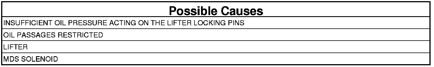 When all criteria has been met, power is supplied to each MDS Solenoid when the engine is making a transition from 8 cylinder mode to 4 cylinder mode. By actuating the solenoid, oil pressure is raised to the pair of lifters that coincide with each particular solenoid. The oil pressure pushes in the locking pins that allows the lifter to collapse, decoupling the valves and camshaft.
