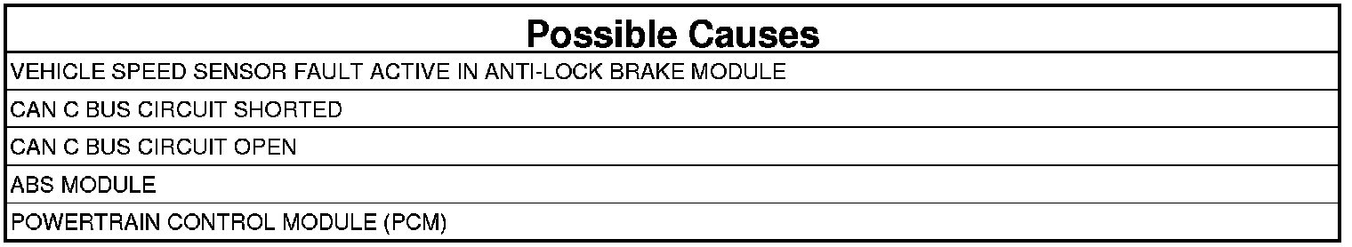 The PCM gets an implausible signal over the CAN C circuit from the ABS Module. The circuit is continuously monitored. One Trip fault.