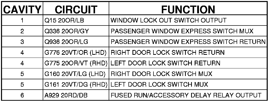 SWITCH-WINDOW/DOOR LOCK-PASSENGER - (PASSENGER DOOR JUMPER) 6 WAY