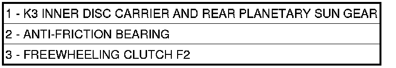 2. Remove rear sun gear (4) with the K3 internally toothed disk carrier and rear freewheeling clutch F2 (3).
