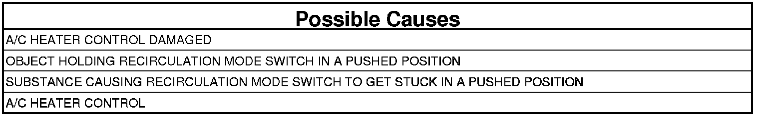 1. Inspect the A/C Heater Control for anything that would cause the Recirculation mode switch to stay or stick in a pushed position.