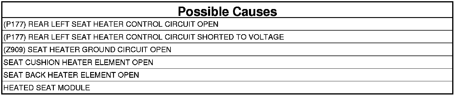 - Repair the (P177) Rear Left Seat Heater Control circuit for a short to voltage.