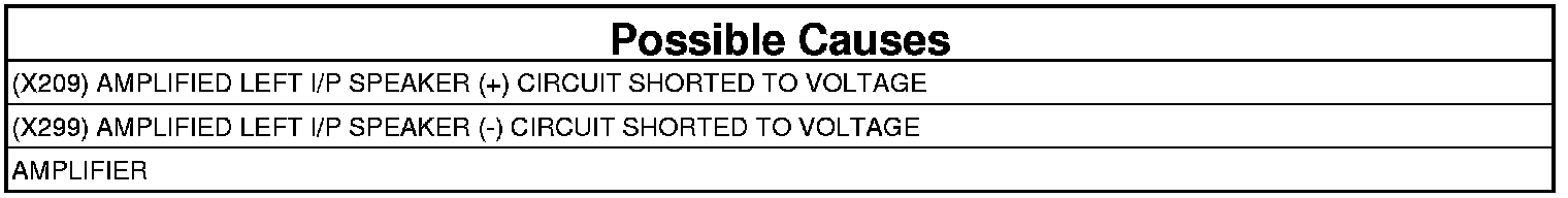 - Repair the short to voltage in the (X209) Left I/P Speaker (+) circuit.