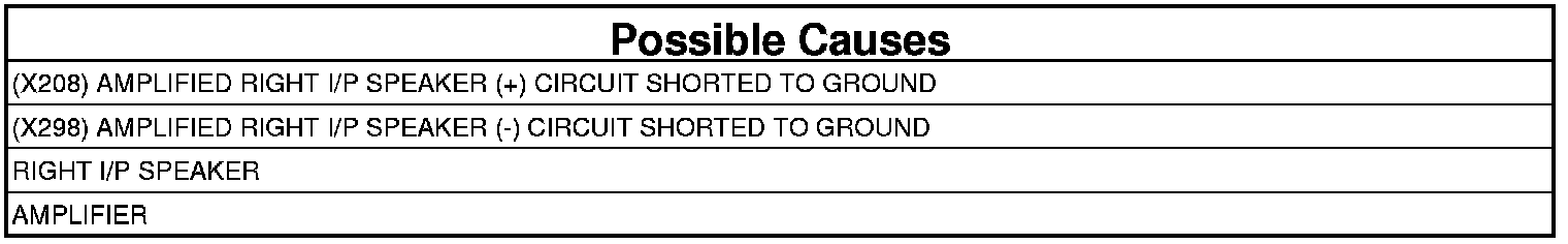 - Repair the short to ground in the (X208) Right I/P Speaker (+) circuit.