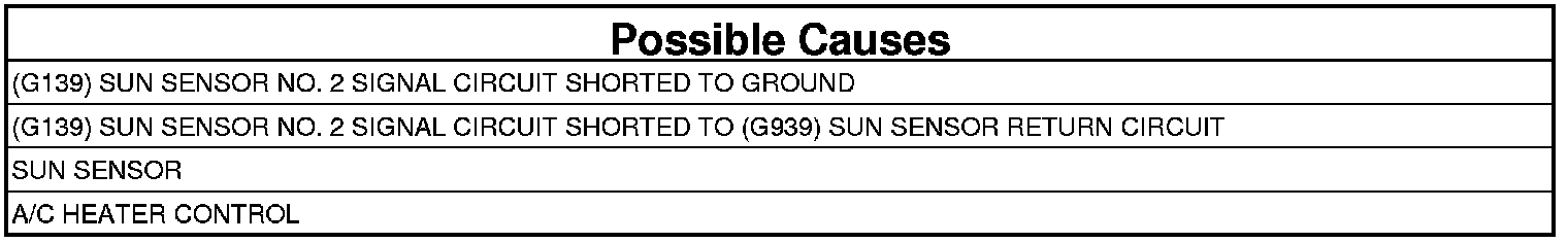 - Repair the (G139) Sun Sensor No. 2 Signal circuit for a short to the (G939) Sun Sensor Return circuit.