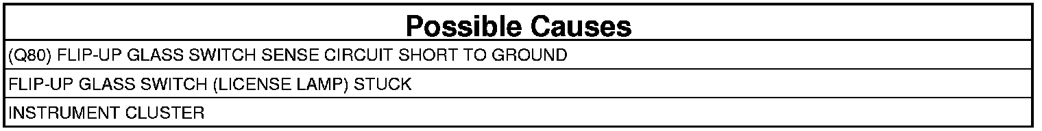 - Repair the (Q80) Flip-Up Glass Switch Sense circuit for a short to ground.