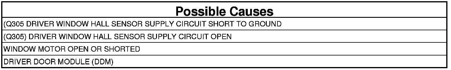 3. (Q305) DRIVER WINDOW HALL SENSOR SUPPLY CIRCUIT SHORT TO GROUND