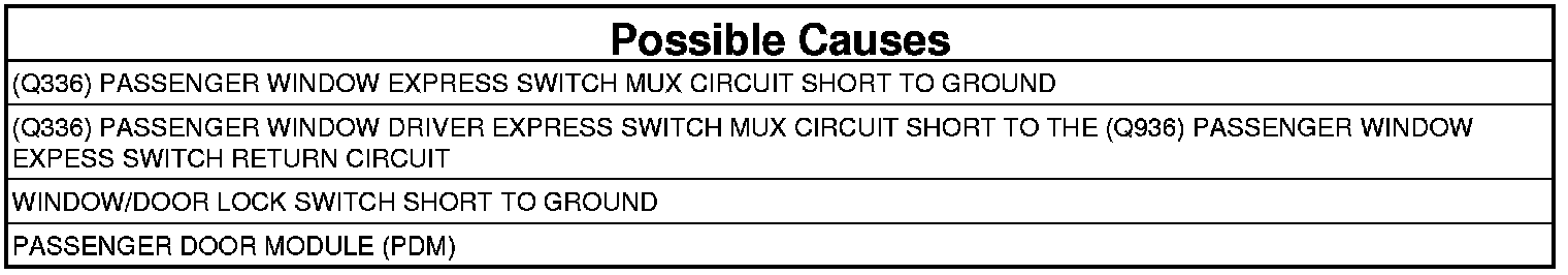 3. (Q336) PASSENGER WINDOW EXPRESS SWITCH MUX CIRCUIT SHORT TO GROUND