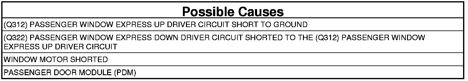 3. (Q312) PASSENGER WINDOW EXPRESS UP DRIVER CIRCUIT SHORT TO GROUND