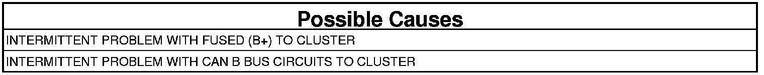 - Remove the Cluster and inspect the Fused B (+) and both CAN B BUS circuits for spread terminals or intermittent opens.
