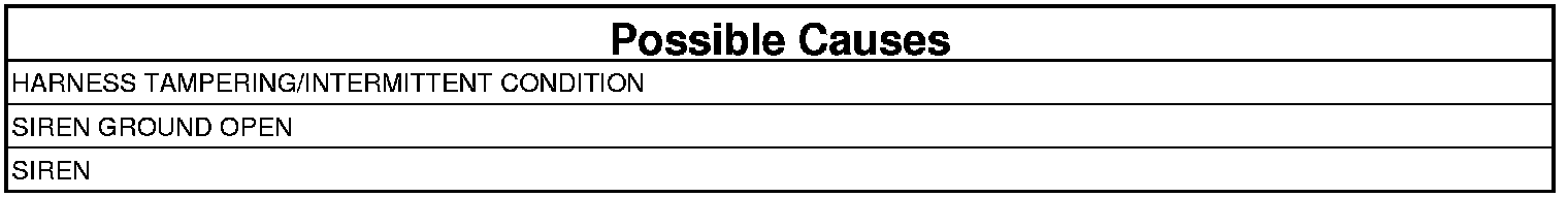 1. Inspect the wiring harness to the siren for any signs of tampering or intermittent condition.