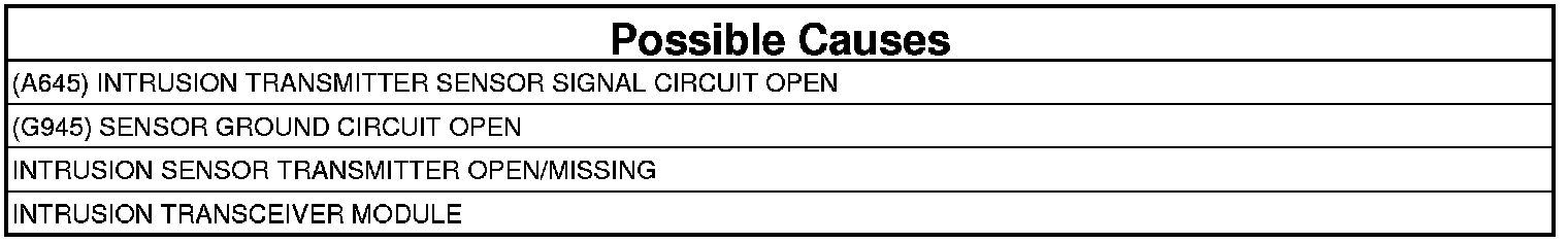 - Repair the (A645) Intrusion Transmitter Sensor Signal circuit for an open.