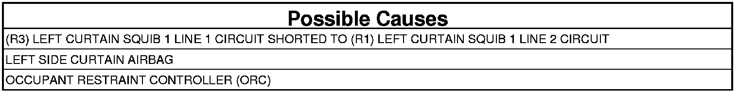 - Repair the (R3) Left Curtain Squib 1 Line 1 circuit for a short to the (R1) Left Curtain Squib 1 Line 2 circuit.