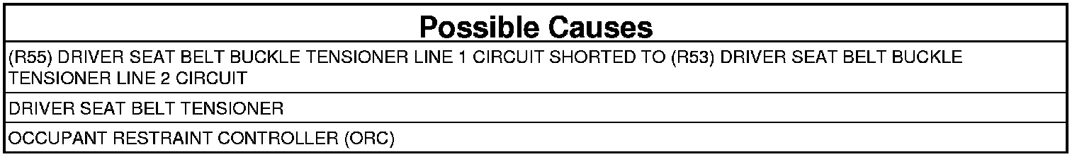 - Repair the (R55) Driver Seat Belt Tensioner Line 1 circuit for a short to the (R53) Driver Seat Belt Tensioner Line 2 circuit.