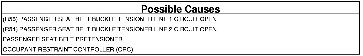 - Repair the open (R54) or (R56) Passenger Seat Belt Buckle Tensioner circuits.