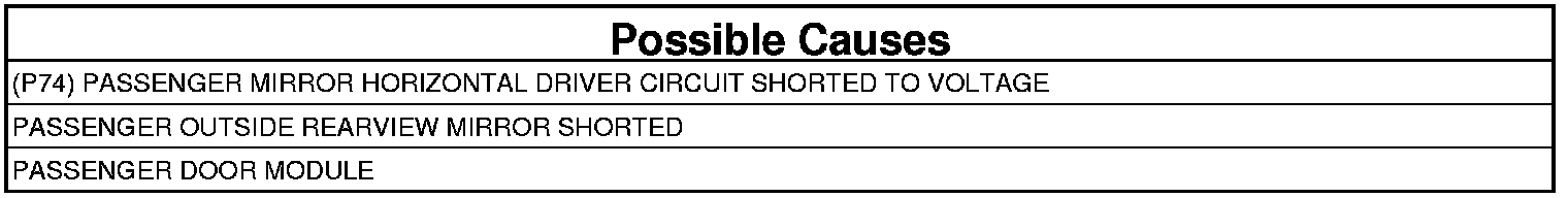 - Repair the (P74) Passenger Mirror Horizontal Driver circuit for a short to voltage.