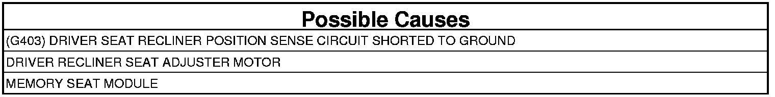 - Repair the (G403) Driver Seat Recliner Position Sense circuit for a short to ground.