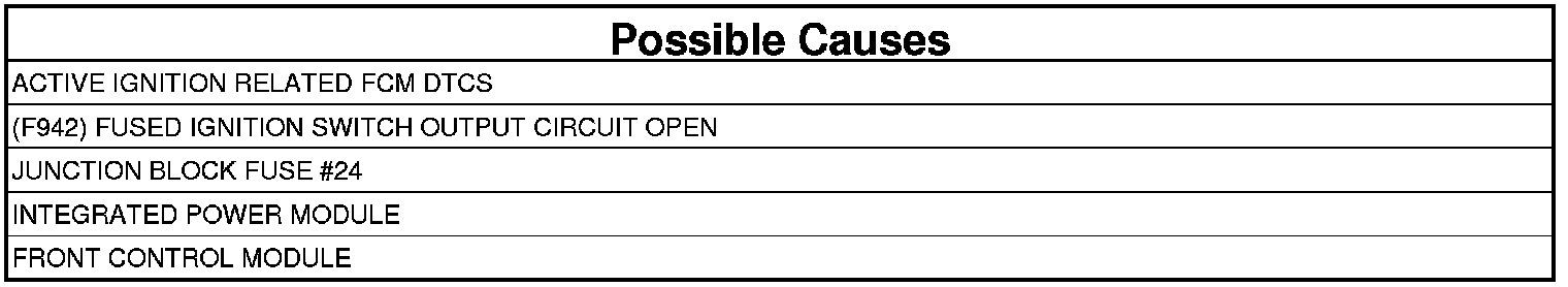- Repair the (F942) Fused Ignition Switch Output circuit for an open.