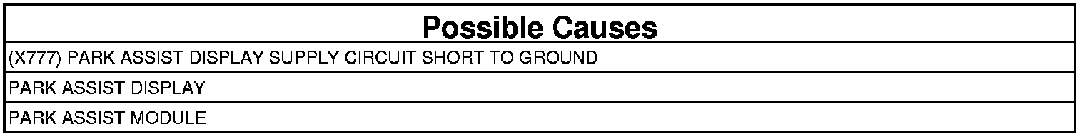 - Repair the (X777) Park Assist Display Supply circuit for a short to ground.