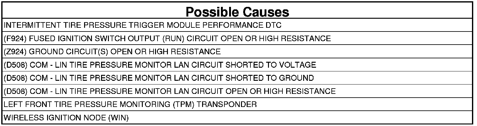- Repair the (D508) COM - LIN Tire Pressure Monitor LAN circuit for a short to voltage.