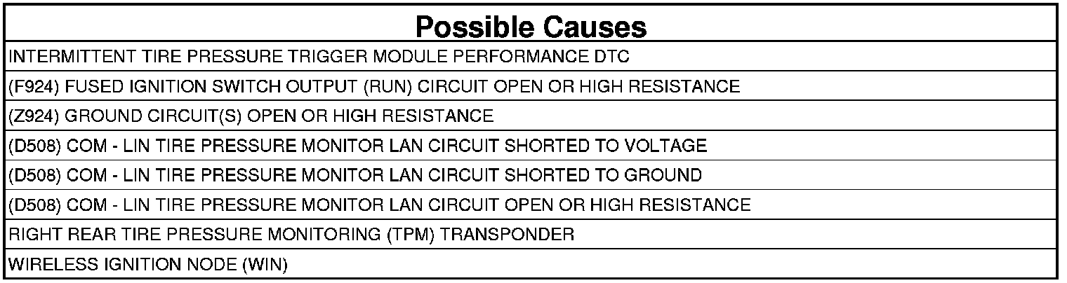 - Repair the (D508) COM - LIN Tire Pressure Monitor LAN circuit for a short to voltage.