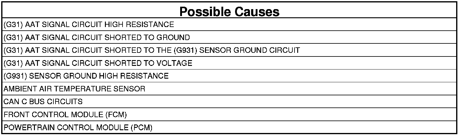 - Repair the short between the (G931) Sensor ground circuit and the (G31) AAT Signal circuit.