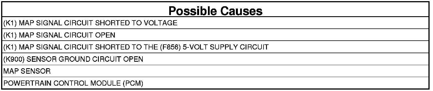 5. (K1) MAP SIGNAL CIRCUIT SHORTED TO THE (F856) 5-VOLT SUPPLY CIRCUIT