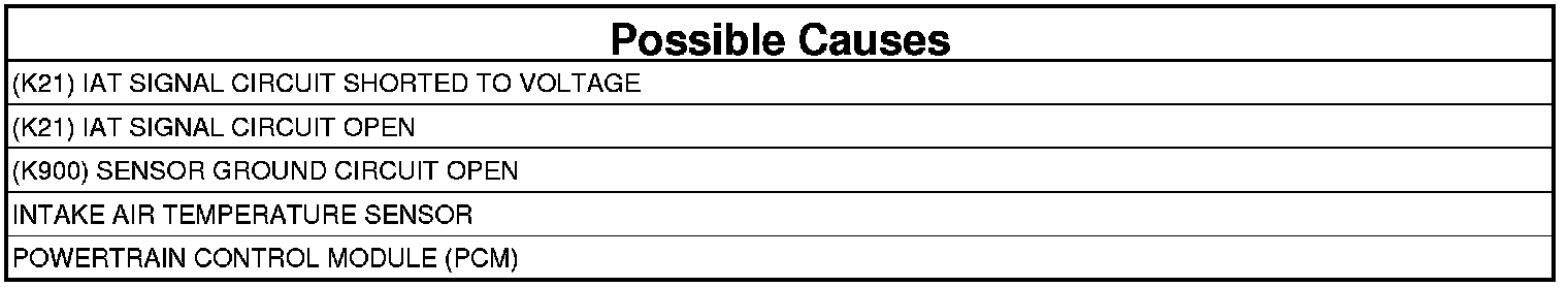 - Repair the short to voltage in the (K21) IAT Signal circuit.
