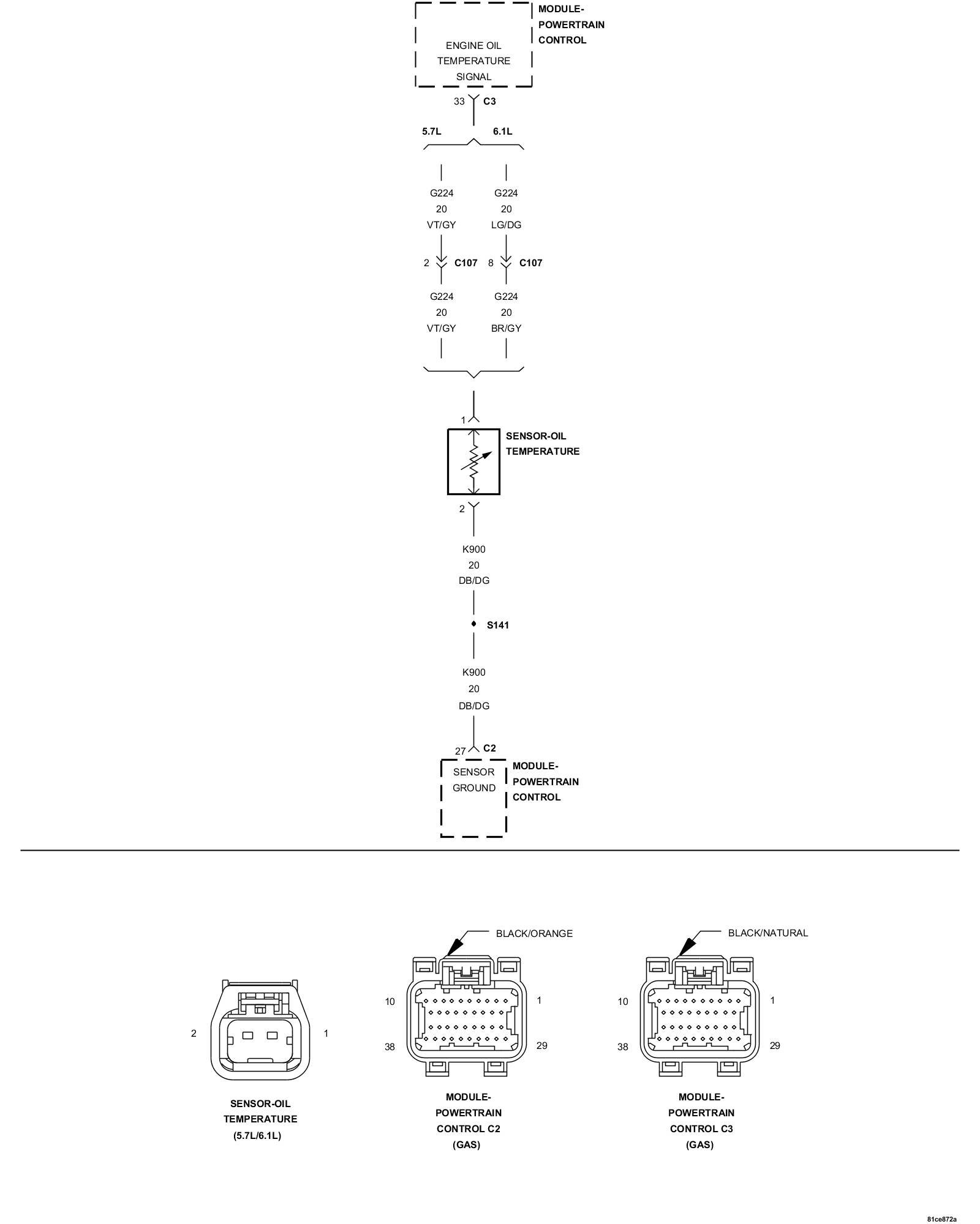 3. (G224) ENGINE OIL TEMP SIGNAL CIRCUIT SHORTED TO THE (K900) SENSOR GROUND CIRCUIT