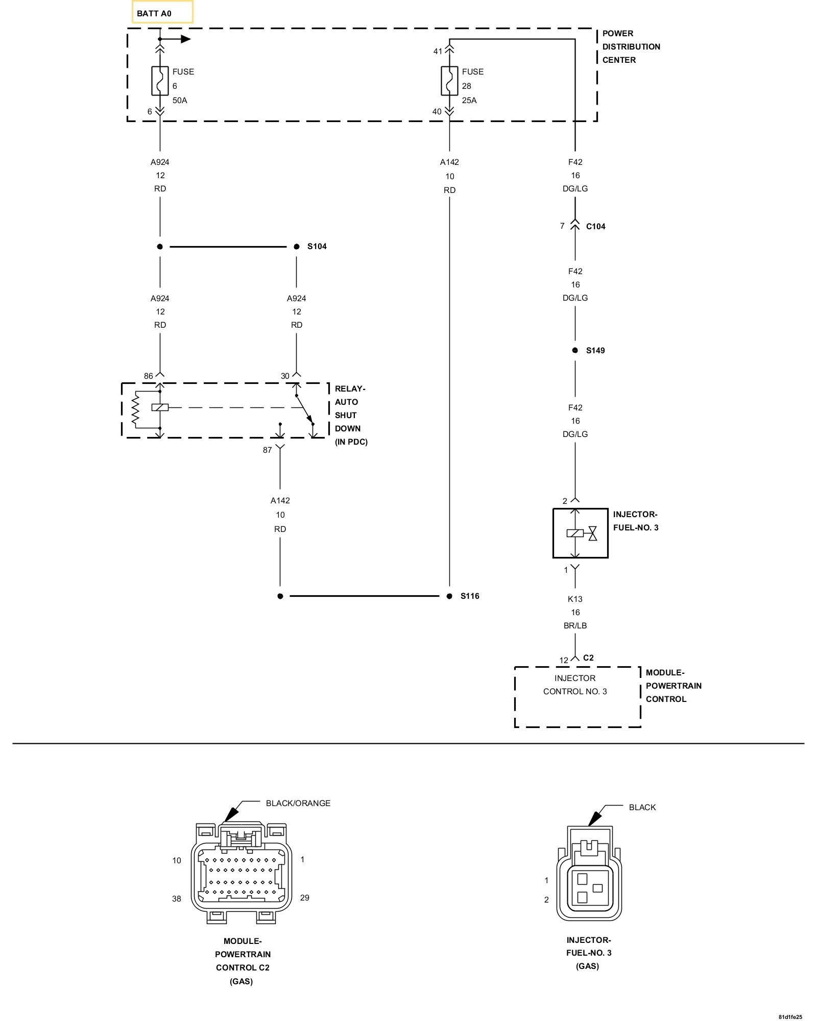 3. Using the wiring diagram/schematic as a guide, inspect the Fuel Injector 3 wiring and connector.