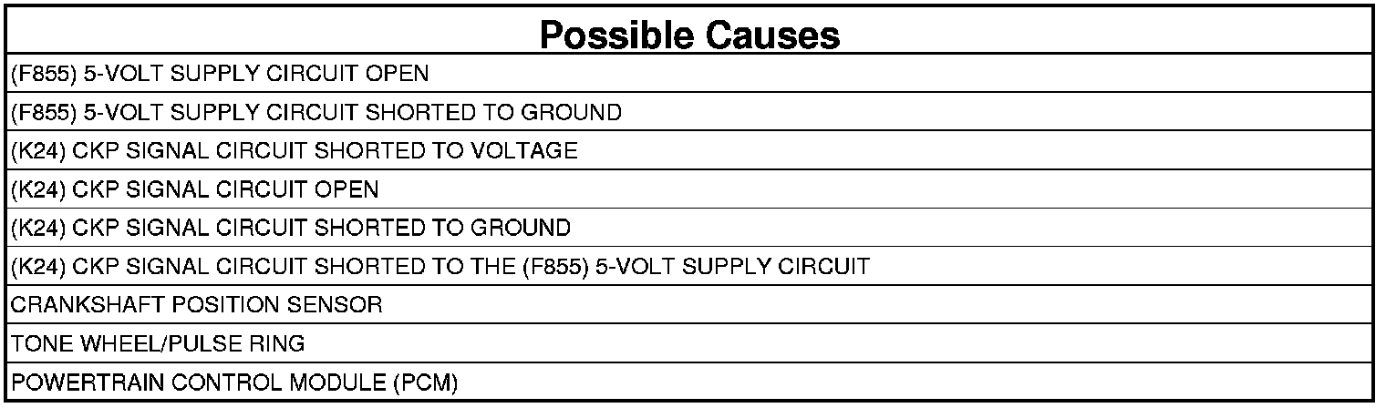 - Repair the short between the (F855) 5-volt Supply circuit and the (K24) CKP Signal circuit.