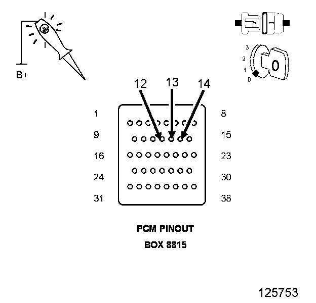 CAUTION: Do not probe the PCM harness connectors. Probing the PCM harness connectors will damage the PCM terminals resulting in poor terminal to pin connection. Install the PCM Pinout Box 8815 to perform diagnosis.