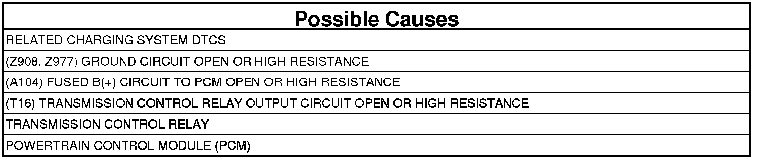 - Refer to the Charging System category and repair any Engine Charging System DTCs, before testing DTC P0562. NOTE: After repairing the Engine Charging System DTCs, perform the Transmission Verification test to verify the transmission was not damaged. Transmission Verification Test
