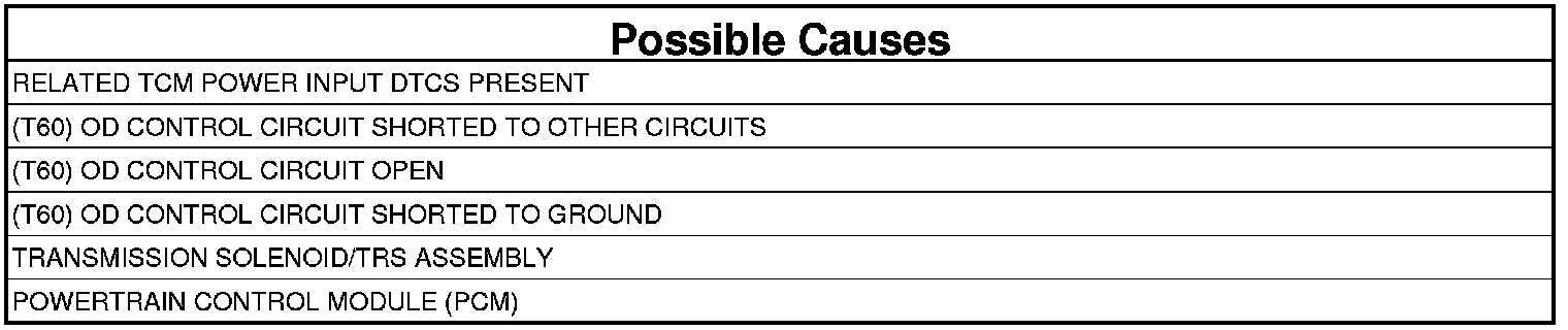 - Repair the (T60) OD Control circuit for a short to ground.