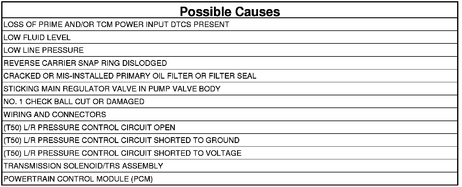 - Repair the (T50) L/R Pressure Control circuit for a short to ground.