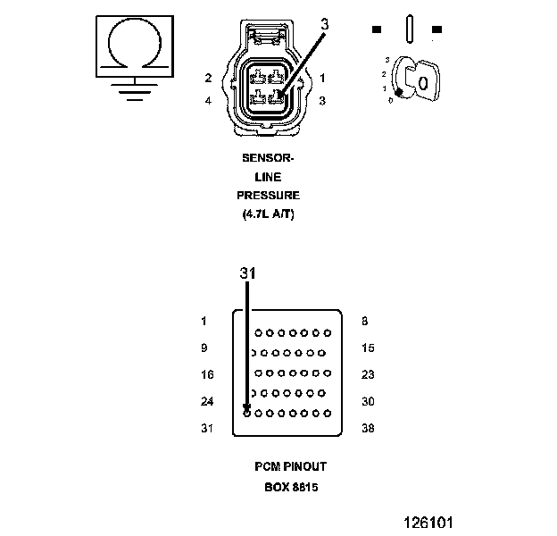 1. Measure the resistance of the (T38) Line Pressure Signal circuit between the Line Pressure Sensor harness connector and the appropriate terminal of the PCM Pinout Box 8815.