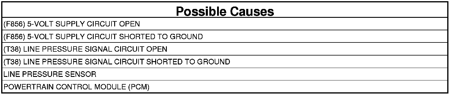 This DTC will set when the monitored Line Pressure Sensor voltage is less than or equal to 0.35 of a volt for 0.18 of a second.
