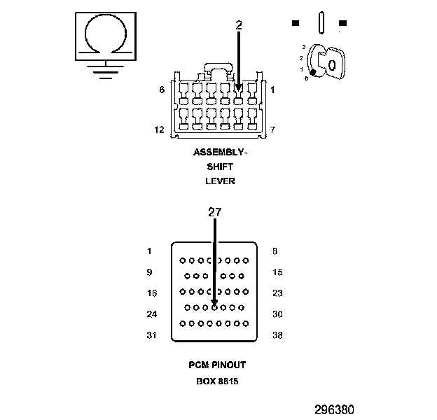 The AutoStick Switch is located in the Shift Lever Assembly (SLA). The gear requested by the AutoStick selection is then sent over the AutoStick Up/Down sense circuit to the PCM to engage the requested gear. Normal AutoStick(R) voltages are: Down = 0.71 to 1.11 volts, Up = 2.02 to 2.41 volts.