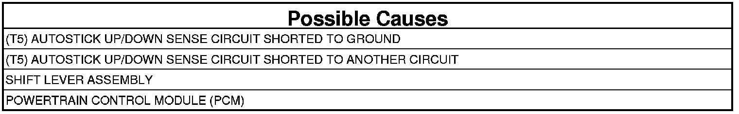 - Repair the (T5) AutoStick Up/Down Sense circuit for a short to ground.