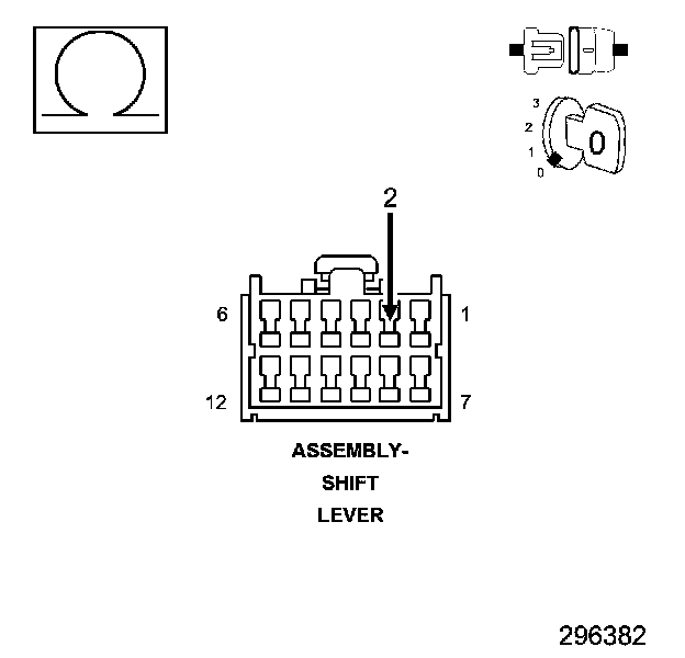 The AutoStick Switch is located in the Shift Lever Assembly (SLA). The gear requested by the AutoStick selection is then sent over the AutoStick Up/Down sense circuit to the PCM to engage the requested gear. Normal AutoStick(R) voltages are: Down = 0.71 to 1.11 volts, Up = 2.02 to 2.41 volts.