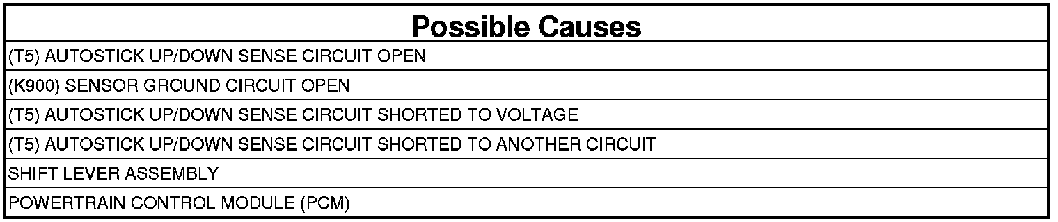 - Repair the (T5) AutoStick Up/Down Sense circuit for a short to voltage.