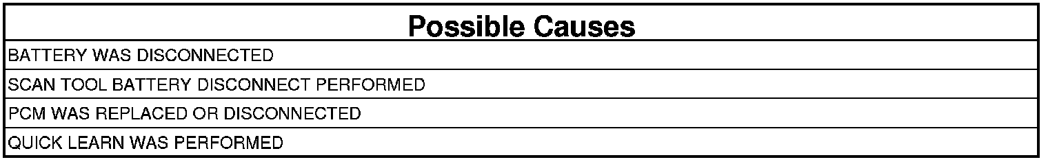 This DTC will set whenever Powertrain Control Module (PCM) is disconnected from Fused B(+) or ground. It will also be set using the scan tool to perform a Battery Disconnect and/or Quick Learn procedure.